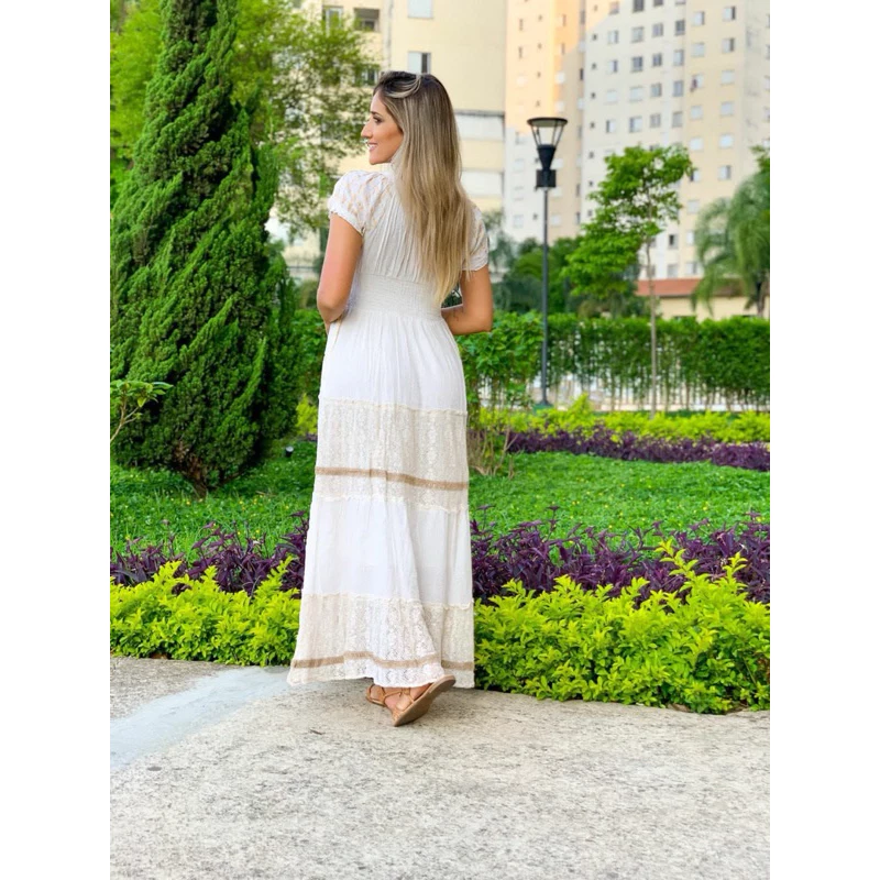 O Vestido Branco Longo Ciganinha Bordado é aquele tipo de peça que conversa com dias de sol, encontros especiais e até produções mais refinadas — basta ajustar os acessórios e o calçado para transformar a proposta com facilidade.
